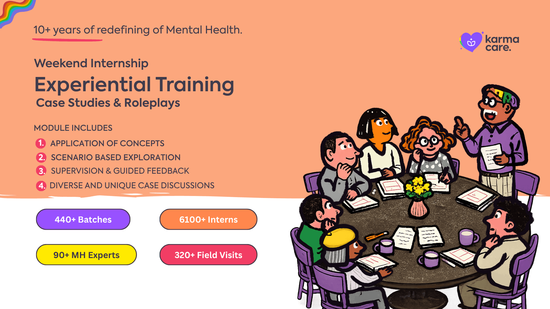 - Participants engage in structured roleplays simulating real therapy sessions, practicing therapeutic conversations, rapport-building, and real-time responses to client concerns.